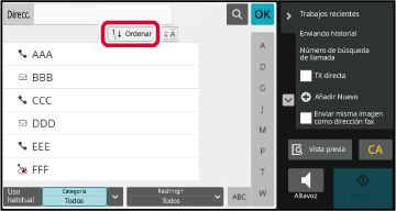 Si pulsa la tecla [Ordenar] se mostrará una lista