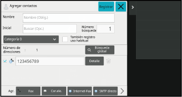 Una vez modificada, toque la tecla [Registrar].Toque la tecla [OK].