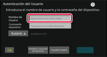 inicio de sesión/contraseña del dispositivo, pulse la tecla "Usuario