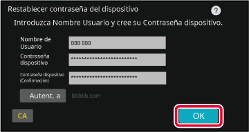 Pulse la tecla [Restablecer contraseña del dispositivo].