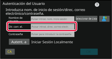 que aparezca la tecla [Dir. corr. el.], según el método de autenticación. Pulse