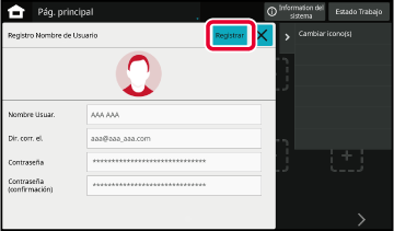 Toque [Añadir usuario/ Editar registro usuario] en el panel de acciones.