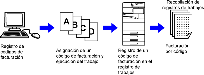 Se utiliza para categorizar los resultados de los trabajos de impresión y envío ejecutados y permitir una gestión eficiente. Por ejemplo, puede asignar un código por cliente y recopilar información sobre costes por cliente a partir de los registros de trabajos. Ejemplo de código: Emisión de empresa A |