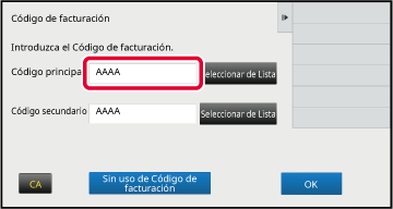 Cuando se abra la ventana de introducción del código de facturación, pulse el cuadro de [Código principal] y escriba el código principal.