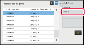 Toque y seleccione el código principal que vaya a eliminar y después toque [Eliminar] en el panel de acciones.