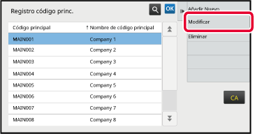 Toque y seleccione el código principal que vaya a editar y después toque [Modificar] en el panel de acciones.