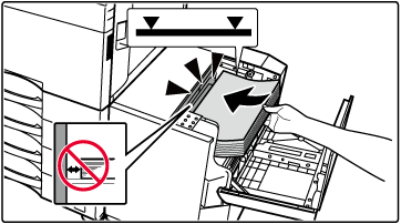 Työnnä paperi tasolle, kunnes se pysähtyy. Aseta paperi tulostuspuoli alaspäin. Paperipino ei saa ylittää merkkiviivaa (enintään 3000 arkkia).Sulje kansi varovasti.