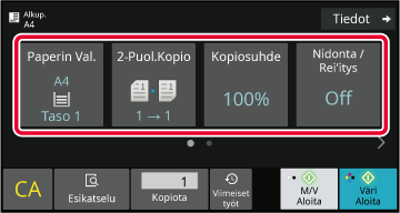 Jos teet vain yhdet kopiot, kopioiden määrää ei tarvitse määrittää.Aseta ”Oletusasetukset” järjestelmäasetusten