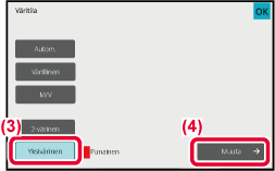 Kun asetukset on määritetty, kosketa [OK] [Yksivärinen] -näytössä ja tarkista, että muutettu asetus näkyy väritilanäytön [Yksivärinen] -näppäimen vieressä.Version 01a / bp71c65_usr_01a_fi