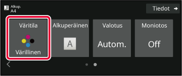Kun asetukset on tehty, kosketa [OK]-näppäintä. Tarkista, että määritetty väritila on valittu.Alkuperäinen kopioidaan