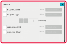 Kun asetukset on tehty, kosketa [OK]-näppäintä.Tämä toiminto lisää välisivuja kopiosarjan