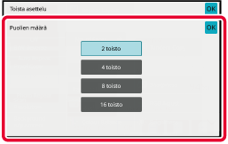 Kun asetukset on tehty, kosketa [OK]-näppäintä.Aloita kopiointi koskettamalla [Väri Aloita]- tai [M/V Aloita]-näppäintä.