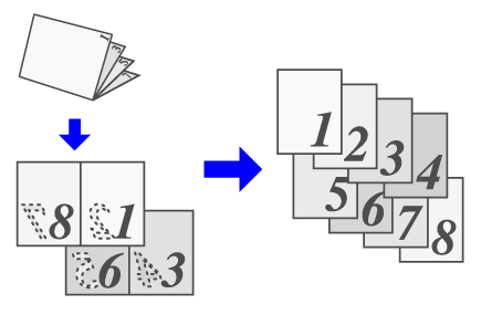 Tällä toiminnolla kopioidaan kaksi tai neljä alkuperästä sivua järjestyksessä