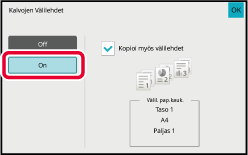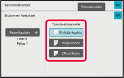 Kun kopioit välilehtiarkeille, valitse [Kopioi myös välilehdet] -valintaruudussa asetukseksiAloita kopiointi koskettamalla [Väri Aloita]- tai [M/V Aloita]-näppäintä.