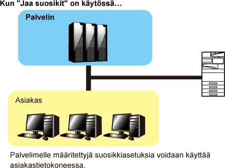 jos ”Suosikki” on asetettu jaetun palvelimen tulostinajurille, tätä