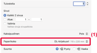 - Valitse kirjekuoren koko "Paperikoko"-valikosta.