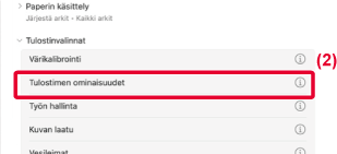 - Valitse [Tulostimen ominaisuudet] kohdasta "Tulostimen vaihtoehdot”