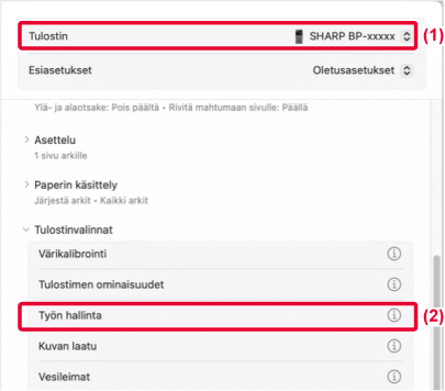 MacOS 12.ssa ja aiemmissa, valitse [Työn käsittely].