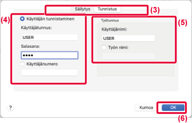 - Syötä tarvittaessa käyttäjänimi ja työn nimi.