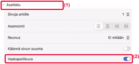 eri tulostuskohdat (marginaalit) erikseen parittomille ja parillisille