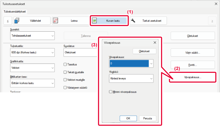 Tämä toiminto lisää koko viivan paksuutta, kun tulostusviivat