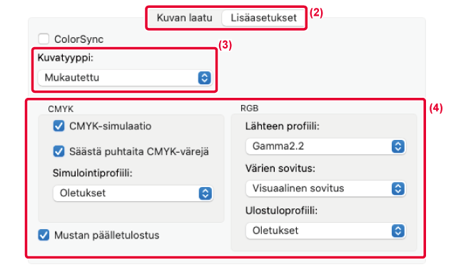valitsemalla [ColorSync]-valintaruudun niin, että valintamerkki