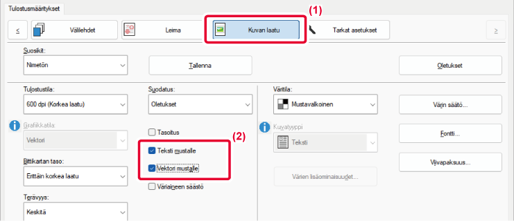 Valitse haluatko tulostaa mustat data-alueet pelkästään mustalla väriaineella. |