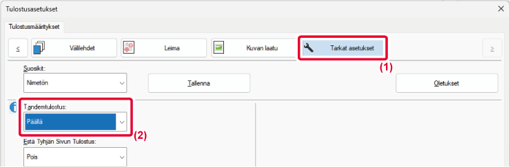 - Valitse [Päällä] kohdassa "Tandemtulostus"