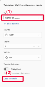 Valitse tarvittavat tulostuksen asetukset ja napsauta