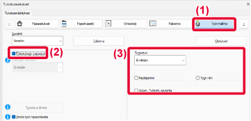 - Valitse [Työn käsittely] kohdasta "Tulostimen