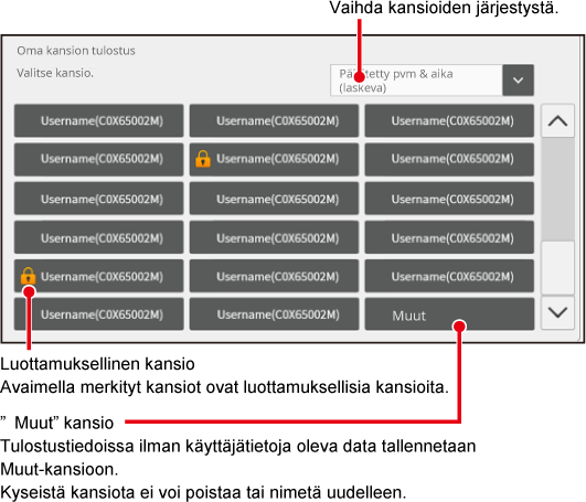 Käytä toimintoa ottamalla käyttöön [Oman kansion tulostus]