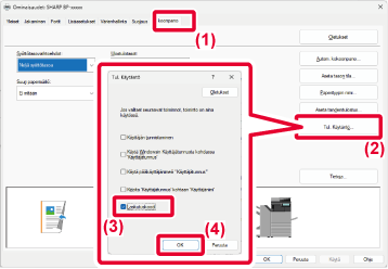 Windows 10:ssä, napsauta laitteen tulostinajurin nimeä, napsauta [Hallinnoi] ja napsauta [Tulostuksen määritykset].Laskutuskoodin määritys