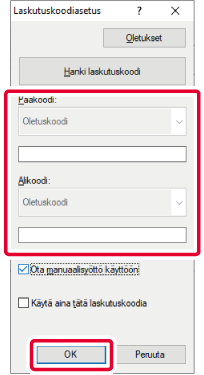Kun tulostus alkaa, laskutuskoodin asetusnäyttö tulee