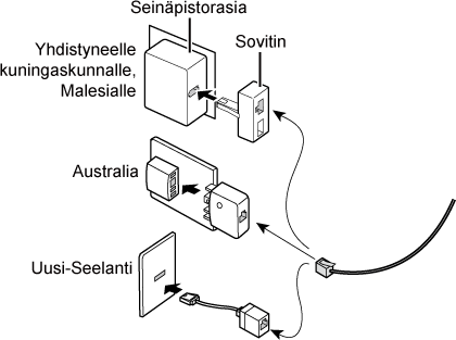 Joissain maissa tarvitaan sovitin puhelinlinjan johdon