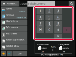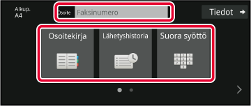 Kosketa numeronäppäimiä ja syötä kohdenumero suoraan tai hae kohde osoitekirjasta tai numeron avulla.Määritä asetukset.