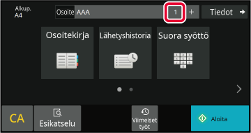 AUTOMAATTINEN SYÖTTÖLAITEMääritä kohteen faksinumero ja kosketa [Suora lähetys] tehtäväpaneelissa.