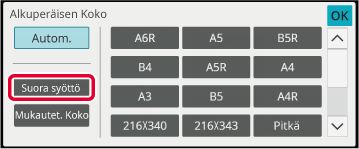 Kosketa [Suora syöttö]-näppäintä ja syötä sitten skannauskoko.
