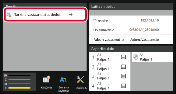 koskettamalla työn tilanäyttöä ja koskettamalla [Tarkista vastaanotetut tiedot] Töiden