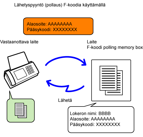 pyynnön, faksi vastaanotetaan ja tallennetaan sinun koneesi F-koodin