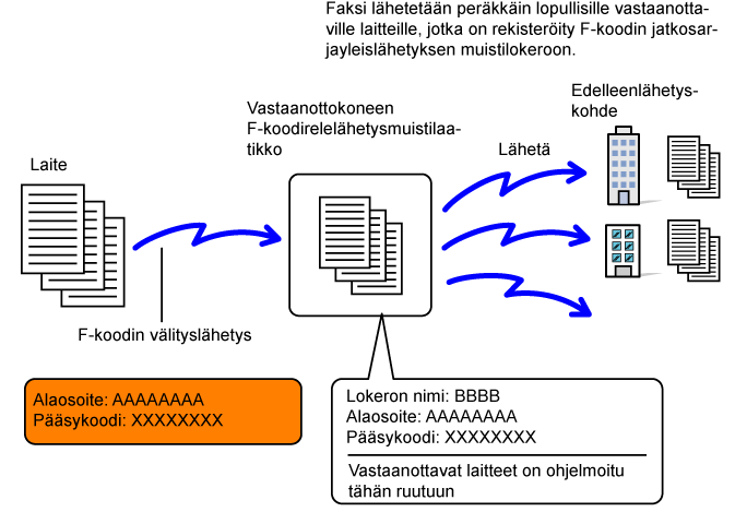 F-koodilla lähetetty faksi saapuu vastaanottavan laitteen