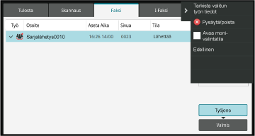 Vahvista faksityön tila koskettamalla tilanäyttöä ja valitsemalla faksin.