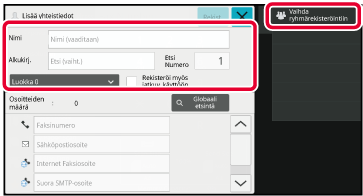 Syötä perustiedot ja kosketa kohtaa [Vaihda ryhmärekisteröintiin] toimintopaneelissa.