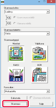 painike:Kun esikatselukuva näkyy eikä skannaus aluetta ole määritelty,