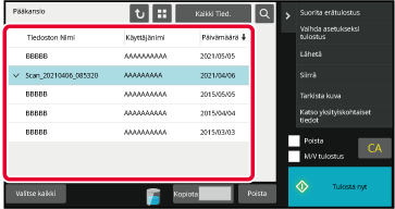 Kun olet valinnut kansion, sen sisältämät tiedostot tulevat näkyviin. Valitse haettava tiedosto.Toiminnon valinta.