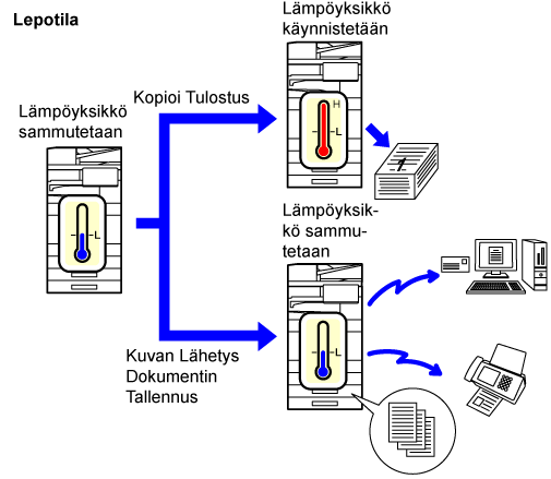 Työt, joita ei tulosteta, suoritetaan lämmitysyksikkö