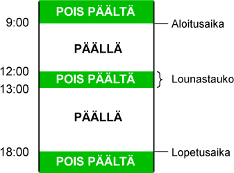 Tämä toiminto hallitsee virrankäyttöä kellonajan mukaan laitteen