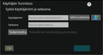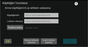 Syöttäminen näytön näppäimistölläJos käyttäjänimen rekisteröintiä ei ole suoritettu asetustilassa,