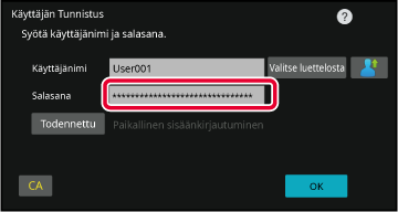 vain LDAP-tunnistusta käyttävän käyttäjän on kosketettava [Käyttäjänimi]-tekstiruutua