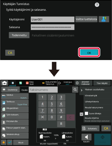 Jos annettu käyttäjänimi ja salasana tunnistetaan, käyttäjän skannattavien