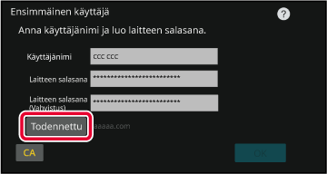 Laitteen salasana on laitteen autentikoinnin salasana.